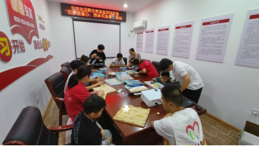 党支部成员与社区儿童们下象棋、磁吸拼图 胡志权摄