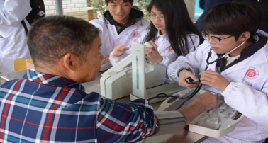 活动现场,队员们为社区老人们量血压、测血糖、推拿按摩,耐心询问他们的身体状况,为他们答疑解惑,志愿者们在给予老人们身心和精神的陪伴的同时,也深刻感受到老人们对青年一代的关怀、期望与认可,鼓舞着更多青年关注和支持“爱老”行动。