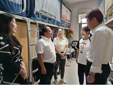 在学生宿舍,叶耀辉代表学校分别给两位同学送上粽子、牛奶等慰问品,将党和国家及学校的温暖关怀传递到她们心中,并送上端午节的节日祝福。叶耀辉一行与同学们亲切交谈,询问学生在校学习和生活的情况,勉励她们在党和政府资助政策的扶持下,坚定信心、自立自强,练就过硬本领奉献国家。同学们对学校和学院领导的关心慰问表示感谢,纷纷表示将以自强不息、积极向上的态度面对未来,争取早日学有所成,用医学知识和本领回报社会。