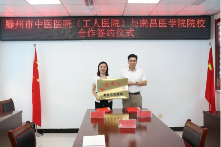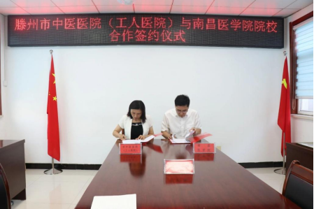 8月12日,南昌医学院与滕州市中医医院(工人医院)合作签约仪式在中心院区举行。滕州市中医医院(工人医院)医院领导班子及相关职能科室负责人,南昌医学院中医学院副院长(主持工作)郑保平、中医学院综合办主任喻道舫、教务处实习实践科干事曹宇等参加签约。会议由市卫健局党组成员、医院党委书记张峰主持。