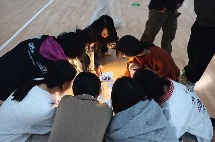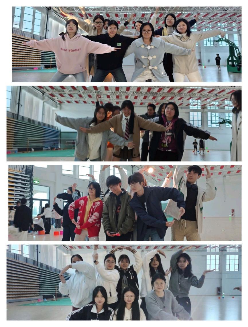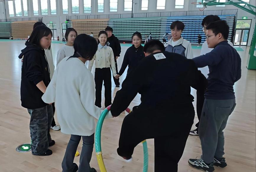 本次活动精心设计了四个环节。首轮“快速拼图+动作模仿”迅速打破沉寂,团队成员分工协作,在紧张氛围中共同完成最终动作亮相,为每位参与者提供了展示机会。随后的“情绪传递”和“两人三足”环节将气氛推向高潮。活动中,同学们学习换位思考,感受彼此情感;为配合队友不断调整姿态;分享成功喜悦,在挫折时相互鼓励,深切体会到团队支持带来的温暖。最后的“一圈到底”环节,成员们手牵手传递呼啦圈,象征着力量与信心的接力,为活动画上了圆满句号。