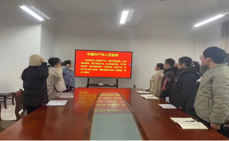 会议由国际歌拉开序幕,全体党员神情肃穆面向党旗而立,在国际歌中感受共产党人的理想信念,表达对世界无产阶级和中国共产党的无限忠诚;随后由陶菁同志致辞,通过致辞回顾我党的光辉历史,感受我党无数革命先驱为共产主义事业无私奉献的精神,并介绍此次重温入党誓词的重大意义,对全体党员提出希望和要求;最后在党支部书记钟小青高昂的领誓声中,每位党员高举右拳,共同作出自己对党的庄严承诺,表达对党的无限忠诚和坚定决心。