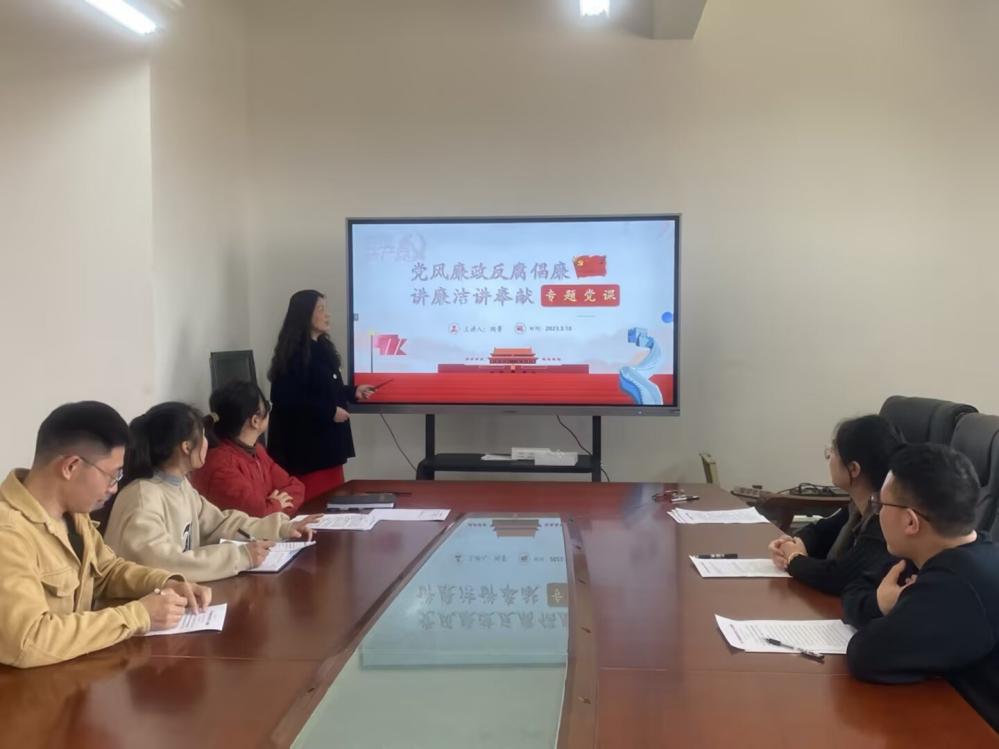 陶菁同志以“党风廉政反腐倡廉,讲廉洁讲奉献”为题为大家上了一堂生动的廉政党课。她从“什么是纪律规矩以及遵规守纪的意义”“当前深入推进党的纪律建设的新形势新要求”“自觉做遵规守纪的党员”等三个方面,对十八大以来从严治党的政策要求尤其是党的二十大对全面从严治党的新精神、新要求进行了讲解,并结合支部党员的专职辅导员岗位实际,列举多项身边正反面事例教育引导青年党员同志知敬畏、守底线,勿以礼小而受之,要时刻绷紧廉洁之弦,提高拒腐防变能力,自觉抵制不良侵蚀,确保在党风廉政、师德师风、意识形态领域不出现任何差错。