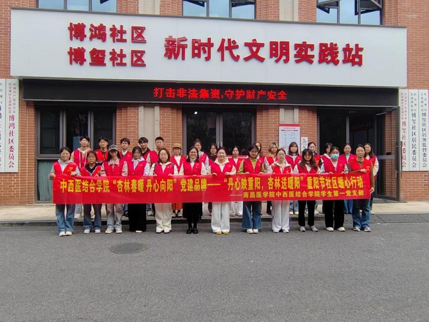 (通讯员:钟小青)金秋送爽,丹桂飘香。为弘扬尊老敬老传统美德,践行党员服务宗旨,10月25日,yl6809永利YL集团学生第一党支部组织学生党员与入党积极分子走进红谷滩区九龙湖街道博鸿社区、博玺社区,开展“丹心映重阳杏林送暖阳”主题活动,以专业服务和温情陪伴为社区老人送上节日祝福。
