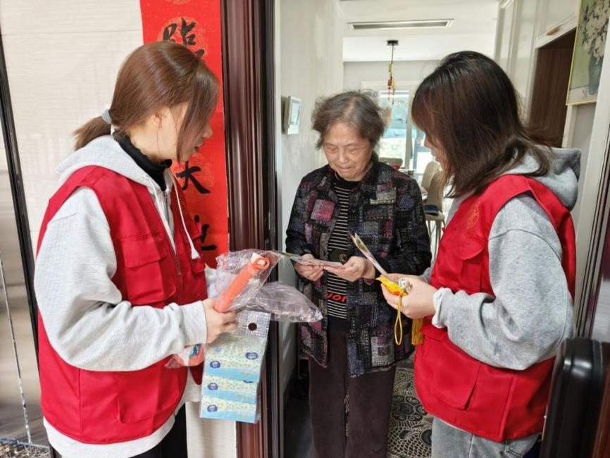 温情陪伴贯穿于活动全程。学生党员与老人们围坐一处,亲切交谈,聆听老人们分享生活趣事与人生经历。同时,入户探访小组在社区工作人员的引导下,前往行动不便及空巢老人家中,不仅送上节日慰问品与健康保健知识,更通过近距离的贴心陪伴,有效缓解老人的孤独感。“孩子们想得真周到,这个重阳节过得格外温暖!”一位独居老人感动地表示。