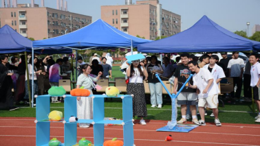 站点四:“齐心协力”团队合作站。参与者需现场组队,参与者需依次将小球丢给身侧队友,全部接到球后将球丢在纸箱内,率先进两个球的队伍可盖“拿”字章。通过该活动,激发青春活力,培养团队精神,促进团队凝聚力,提高团队协作效率。