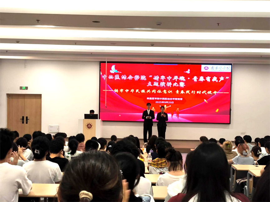 比赛中,选手们紧扣主题,以饱满的热情与深刻的思辨呈现了一场精彩的思想盛宴。部分选手通过《岐黄同心,铸梦中华》等演讲作品阐释深沉的家国情怀,部分选手借助《石榴花开:绘中华民族共同体》等视频作品生动展现民族团结图景,亦有选手以《铸中华魂·扬青春声》等朗诵作品,将专业特色、个人理想与时代使命有机融合。赛事组织严谨周密,现场氛围庄重而热烈,充分彰显了学院青年学子坚定的政治素养与昂扬的精神风貌。经评委严格评审,最终评定团队一等奖一支、团队二等奖两支、团队三等奖三支及团队优秀奖四支。
