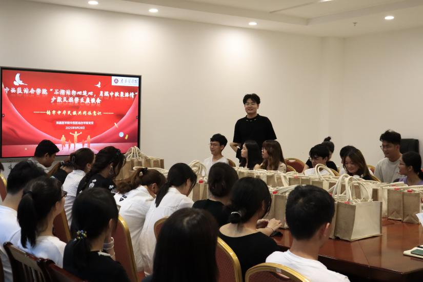 交流环节中,学生代表马贡布次力介绍了入校以来的学习生活体会,表达了对学校与学院温暖关怀的诚挚感谢,并表示将勤勉学习,为民族团结进步事业贡献力量。来自贵州省安顺市关岭布依族苗族自治县的刘佳佳同学,生动介绍了家乡的风俗习惯与近年发展成就,并详细讲述了在校期间的成长历程与收获。活动期间,学院向同学们赠送了象征团圆的中秋月饼及纪念品,向学子传递节日温暖与关怀。