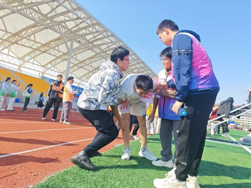 本次志愿服务内容全面,涵盖运动员赛前放松、赛后护理、物资补给及赛场安全保障等多个环节。赛场上,志愿者们凭借专业所学,为运动员提供推拿按摩,有效缓解肌肉紧张;休息区内,他们及时递上矿泉水和面包,为选手补充能量终点线旁,志愿者们更是细心搀扶完成比赛的运动员,关切询问身体状况,传递着真诚的关怀与温暖。无论清晨还是日暮,志愿者们始终坚守岗位,身体力行地诠释着“奉献、友爱、互助、进步”的志愿精神。
